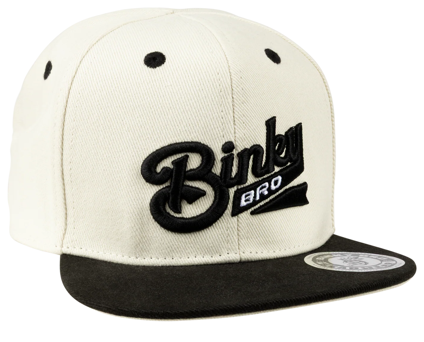 The Jack snapback hat has cream paneling with a branded "BinkyBro" logo on front. This hat is 100% cotton.